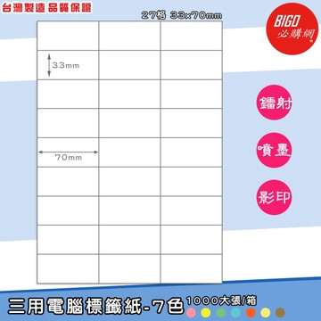 【龍德】LONGDER 三用電腦標籤 A4 33格 26*70mm粉紅1000張/箱 LD-835-R-B(適用雷射、噴墨、影印)