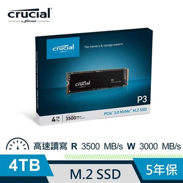 Micron 美光 Crucial P3 4000GB (4TB) PCIe M.2 SSD 固態硬碟 CT4000P3SSD8