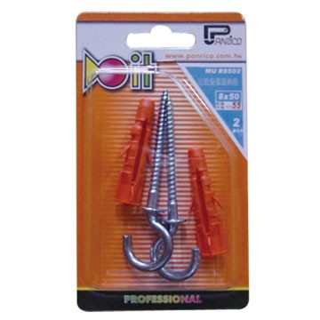 DIY用尼龍旋漲釘套洋釘鈎(洋釘鉤)螺絲組 尼龍栓套吊勾組 塑膠塞子螺絲鈎組 MU 8x50mm