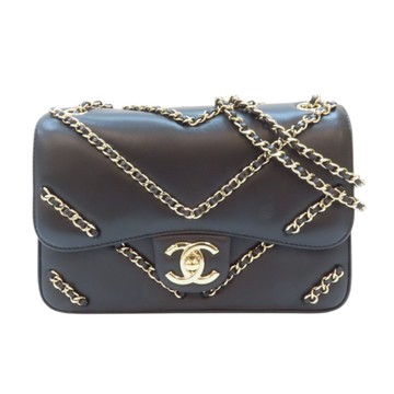 點我下載【二手名牌BRAND OFF】CHANEL 香奈兒 黑色 羊皮 山型紋鍊帶 肩背包