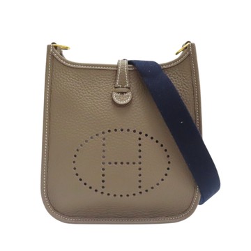 點我下載【二手名牌BRAND OFF】HERMES 愛馬仕【再降價】大象灰 TC皮革 Mini Evelyne 肩背包 B刻