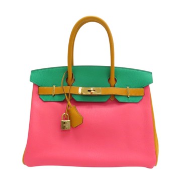 點我下載【二手名牌BRAND OFF】HERMES 愛馬仕【再降價】綠/橘/粉色 Mysore皮革 Birkin 30 柏金包 手提包