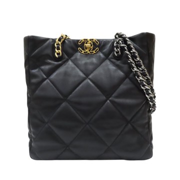 【二手名牌BRAND OFF】CHANEL 香奈兒 黑色 菱格紋羊皮 CHANEL 19 托特包 肩背包 AS3519