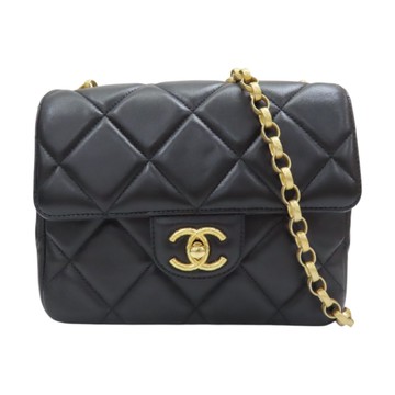 【二手名牌BRAND OFF】CHANEL 香奈兒 黑色 菱格紋 羊皮 mini 鏈帶 金扣 肩背包