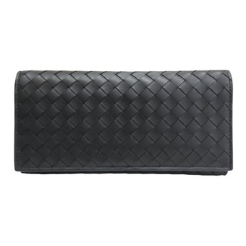 Bottega Veneta 編織羊皮金扣對折長夾(742936-黑)