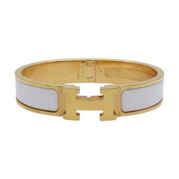 【二手名牌BRAND OFF】HERMES 愛馬仕 白色琺瑯 鍍金屬 Clic H 寬版手環
