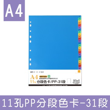 珠友 WA-13012 A4/13K11孔PP分段色卡-31段/適用2.3.4孔夾/索引分類/塑膠分段卡/分隔頁板