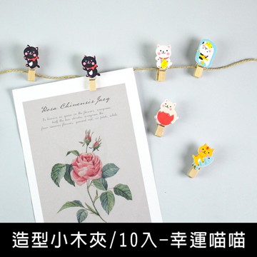 珠友 BU-06035 造型小木夾-幸運喵喵/10入/附麻繩/原木夾/拍立得/DIY照片牆/照片夾