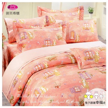 『兔子跟著幸福走』粉【床罩】雙人/御芙專櫃/精裝純棉/五件套/點亮居家