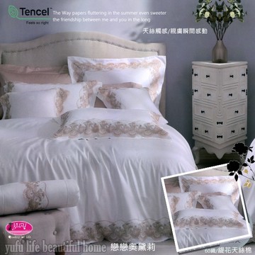 御芙專櫃/戀戀奧黛莉『兩用被+床包』5*6.2尺【300織/緹花天絲棉/四件套】頂級高觸感/雙人