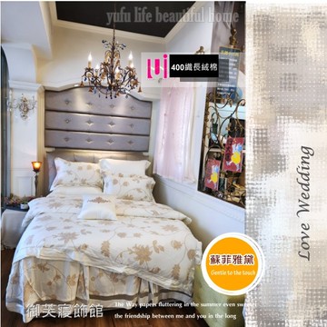 御芙專櫃/蘇菲雅黛『兩用被+床包』6*6.2尺【400織長絨棉/四件套】頂級高觸感/加大