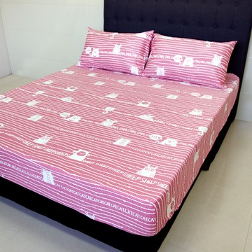 【FITNESS】精梳純棉加大床包+枕套三件組- 萌玩樂園(粉)
