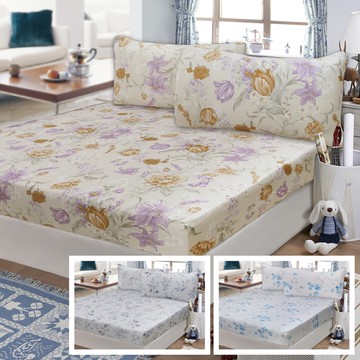 【FITNESS】精梳棉雙人加大床包+枕套三件組-清新田園(2款)