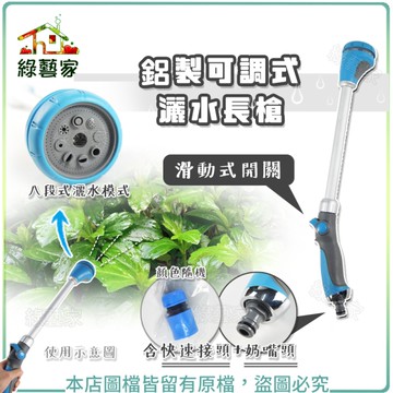 【綠藝家】鋁製可調式灑水長槍(滑動式開關)含奶嘴頭+快速接頭
