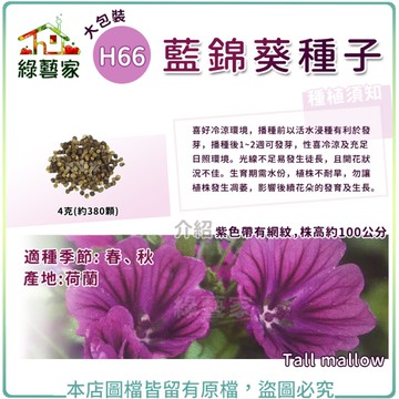 【綠藝家】 大包裝H66.藍錦葵種子4克(約380顆)(紫網紋)