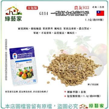 【綠藝家】大包裝G114.一點紅大番茄種子1.4克(約600顆)農友933 耐萎凋病、根瘤線蟲 果實整齊