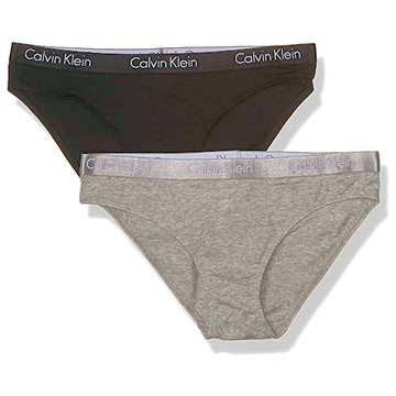 Calvin Klein 女棉質彈性比基尼內褲二件裝(黑色/灰色系)