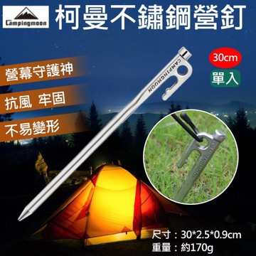 鼎鴻@柯曼不鏽鋼營釘-30cm 單入CAMPINGMOON 帳篷天幕 地布 戶外露營帳棚 野餐
