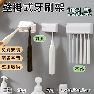 鼎鴻@壁掛式牙刷架-雙孔款 牙刷置物架 兩孔 簡約 防塵蓋 懸掛 背膠黏貼 免打孔 牙刷盒 收納