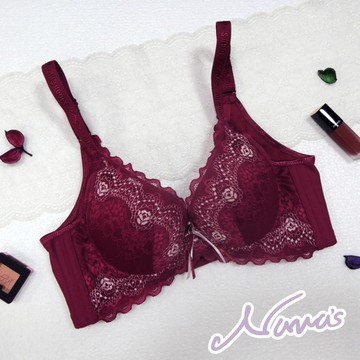 女神訂製服.1/2半罩法式裸感花朵蕾絲美胸鋼圈內衣(酒紅色) 70B~85C Choco Shop