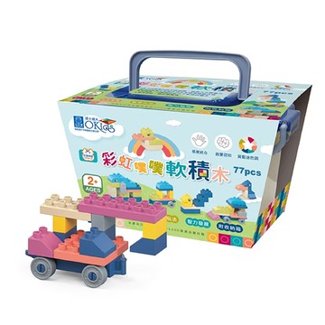 小牛津【Okids博士積木】彩虹噗噗軟積木-77pcs(STEAM玩具/感覺統合/附收納箱)【佳兒園婦幼館】