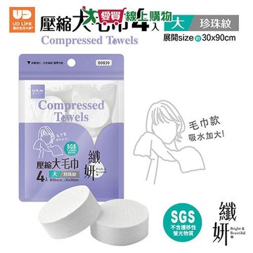 UdiLife優的生活大師 纖妍旅用壓縮大毛巾 珍珠紋 4入/包 洗臉 壓縮毛巾 大毛巾 旅行 盥洗 【愛買】
