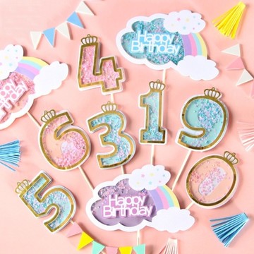 數字蛋糕插旗 閃片款 雲朵彩虹 生日快樂插牌 數字皇冠 蛋糕插件 烘焙蛋糕裝飾