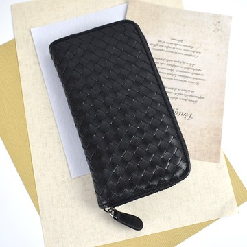 真皮長夾 全黑編織菱格皮夾 NWD25