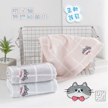 無撚紗 格子貓兒童毛巾 柔軟蓬鬆 純棉童巾【DK大王】