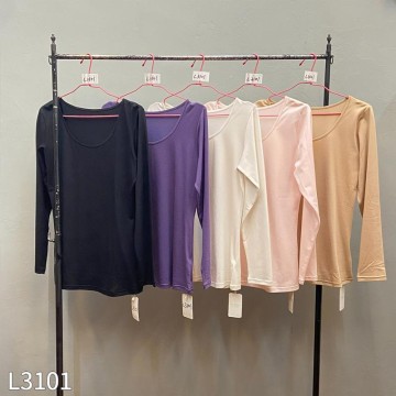 KPUWARM - 圓領寬鬆素色長袖上衣-紫色 (F)