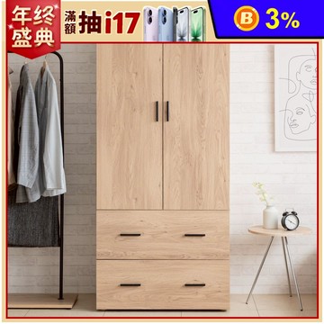 TZUMii專人配送組裝-柏克二門二抽衣櫃 衣櫥 衣物收納櫃 收納櫃 免組裝 專人安裝
