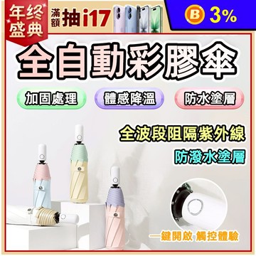 2022新款日系簡約ins彩膠防曬晴雨兩用傘便攜式自動傘三折自動傘