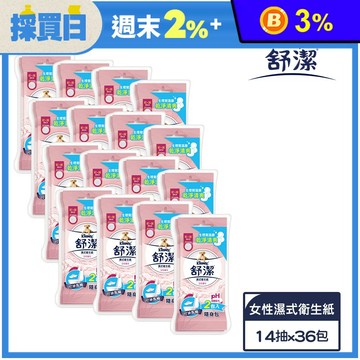 【舒潔】女性專用濕式衛生紙(14抽x2包x18袋/箱)