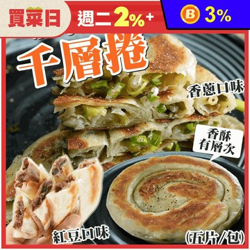 【唐門老爹】千層香蔥捲/千層紅豆捲任選(650g/5片/包) 蔥油餅 紅豆餅