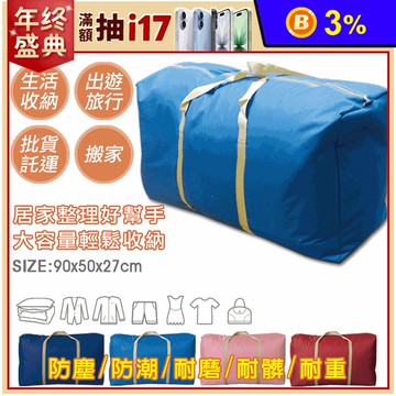 居家收納、外出旅遊必備!600D超耐重防水收納袋,織密厚實耐用,防塵防潮又耐磨。可水洗擦拭,保持清潔好容易!容量大,好收納,可以收納厚重棉被、毛毯、衣物或玩具等物件,實用又方便!寬厚織帶提手設計,讓您提取牢固又耐重!共4色任選。