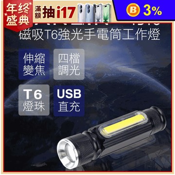 T6 USB手電筒 底部強磁 手電筒 迷你手電筒 usb 小手電筒 磁吸式手電筒 磁鐵手電筒 迷你手電筒 磁吸手電筒