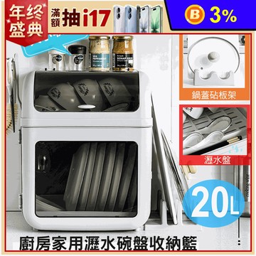 【FL 生活+】簡約附蓋自動瀝水碗籃-小型款(廚房碗櫃/碗筷收納盒/收納箱/防蟲防塵/A-099)