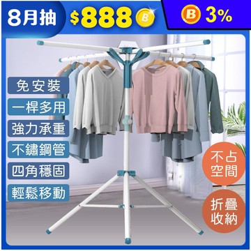 秘寶在這不鏽鋼多功能四桿曬衣架 曬衣神器 曬棉被 可折疊收納 HA-031