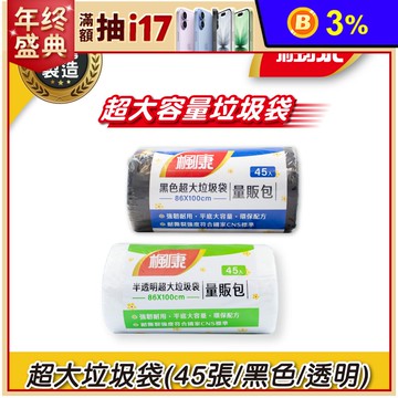楓康超大垃圾袋量販包45入-透明 86x100cm