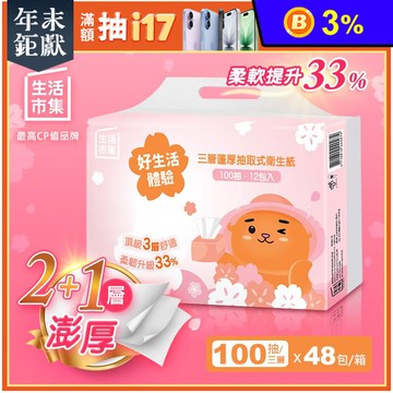 得意優質抽取式衛生紙100抽*24包*3袋