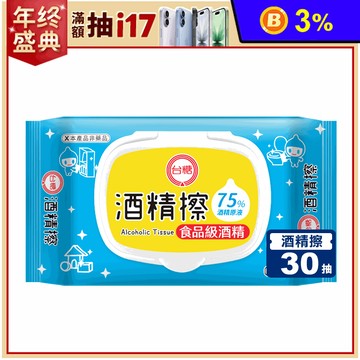 (台灣製)奈森克林-台糖酒精擦家庭包30張(加蓋) 濕紙巾