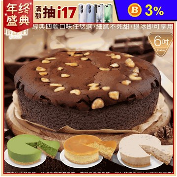 【嚐點甜】經典主廚蛋糕系列(6吋) 法式重乳酪/宇治抹茶/玫瑰花釀/75%布朗尼