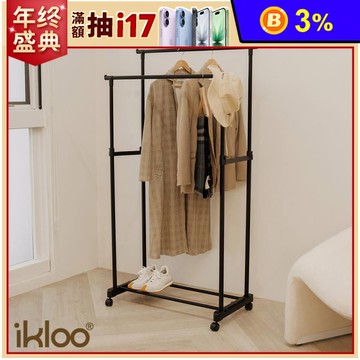 YOIMONO LIVING「工業風尚」粗管頂天立地衣架 (雙層)