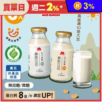 [快速出貨]『生日快樂』【MOS摩斯漢堡】摩斯豆奶 有機大豆-無加糖/微糖 12瓶(多入優惠)