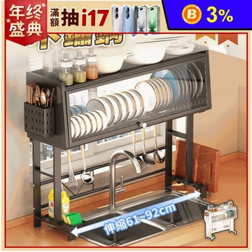 不鏽鋼翻蓋防塵可伸縮水槽碗盤瀝水架