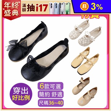 Ann’S拇指外翻救星-小香風雙色飛織珍珠扣瑪莉珍平底包鞋1cm-黑杏(版型偏小)