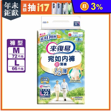 【來復易】成人褲型紙尿褲M-L 箱購 (宛如內褲超薄褲)