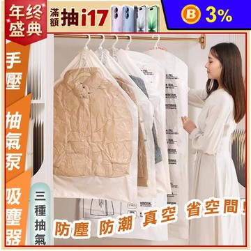 掛衣式真空衣物壓縮收納袋-特長款(3件入) 附手動式泵浦