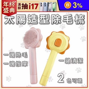寵物太陽除毛梳 狗貓適用 一鍵除毛 清潔梳理按摩 毛髮護理 黃色 1個