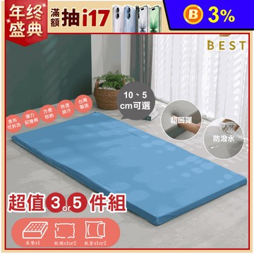 【BEST】(超值組)3M防潑水抑菌透氣記憶床墊 可拆洗布套 枕頭 枕套